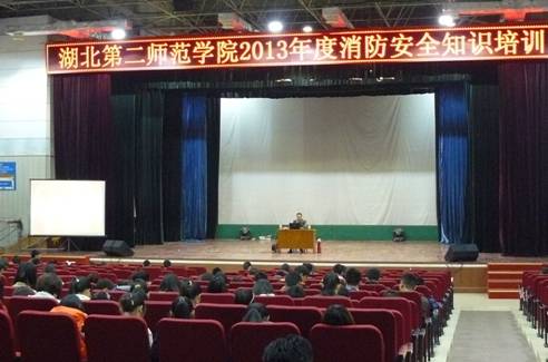 2013年11月14日下午14时30分,湖北第二师范学院综合治理与安全保卫处在学校礼堂举办消防安全知识讲座。此次讲座特别邀请武汉东湖新技术开发区公安消防中队李长洋队长主讲,经济与管理学院、化学与生命科学学院、教育科学学院、物理与机电工程学院的六百余名学生参加。讲座结束后部分学生代表还参加了灭火实践演练。