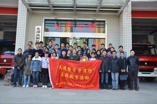 本网讯(记者 雷爽)2013年11月29日中午,来自湖北第二师范学院文学院,马克思主义学院,经济与管理学院的四十余名师生在保卫处胡晶老师的带领下,来到东湖高新消防中队进行参观、学习,零距离感受消防部队生活的方方面面,在中队警营学习消防安全知识。