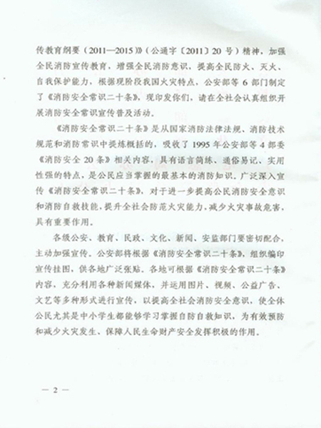 关于印发《消防安全常识二十条》广泛宣传消防安全常识的通知